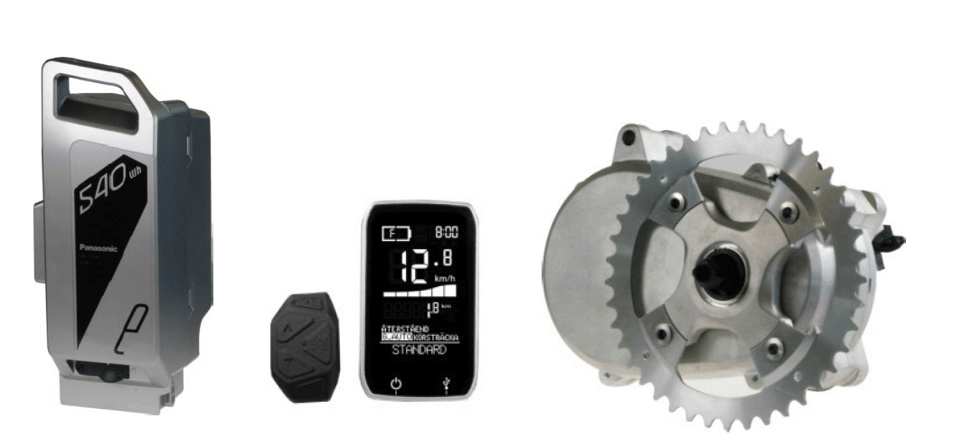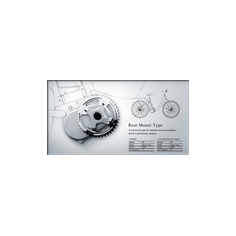 Con sistema de engranajes, caja controladora y sensores.El motor silencioso , hermético y portegido proporciona fuerza de forma directa y uniforme, calculando mediante sensores varias veces por segundo, la fuerza necesaria, para conseguir la velocidad deseada.La unidad central está equipada con más sensores de rotación (torque) , en funcíon de la cadencia de pedaleo y velocidad ajusta la potencia para un óptimo ajuste , eficiencia y autonomía de la batería.