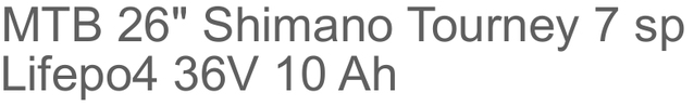 El modelo Egarbike MTB , es un modelo mountanbike eléctrica todoterreno , ofrecer un carácter deportivo, robusto y fiable. Está diseñada para uso en caminos, rurales, de montaña , y permite su uso en ciudad, de serie incorpora guardabarros y portaequipajes, cambio de 7 velocidades Shimano Tourney, controlador de potencia. Incorpora de serie un batería de litio (Lifepo4 top en su categoría) - permitiendo autonomías que rondan los 40-60 kilómetros, permite que el motor funcione a toda velocidad, incluso cuesta arriba. Sus ruedas de 26 pulgadas proporcionan una rodada confortable y equilibrada.